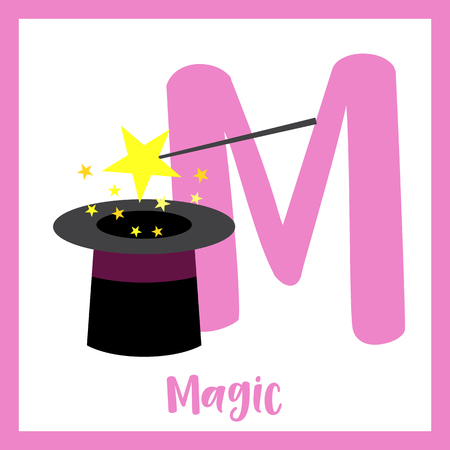 かわいい子供たち Abc アルファベット M 文字トレース フラッシュ カード マジック ハットと子供の幸せなハロウィーンの日のテーマで英語の語彙の学習のための杖 のイラスト素材 ベクタ Image 8741